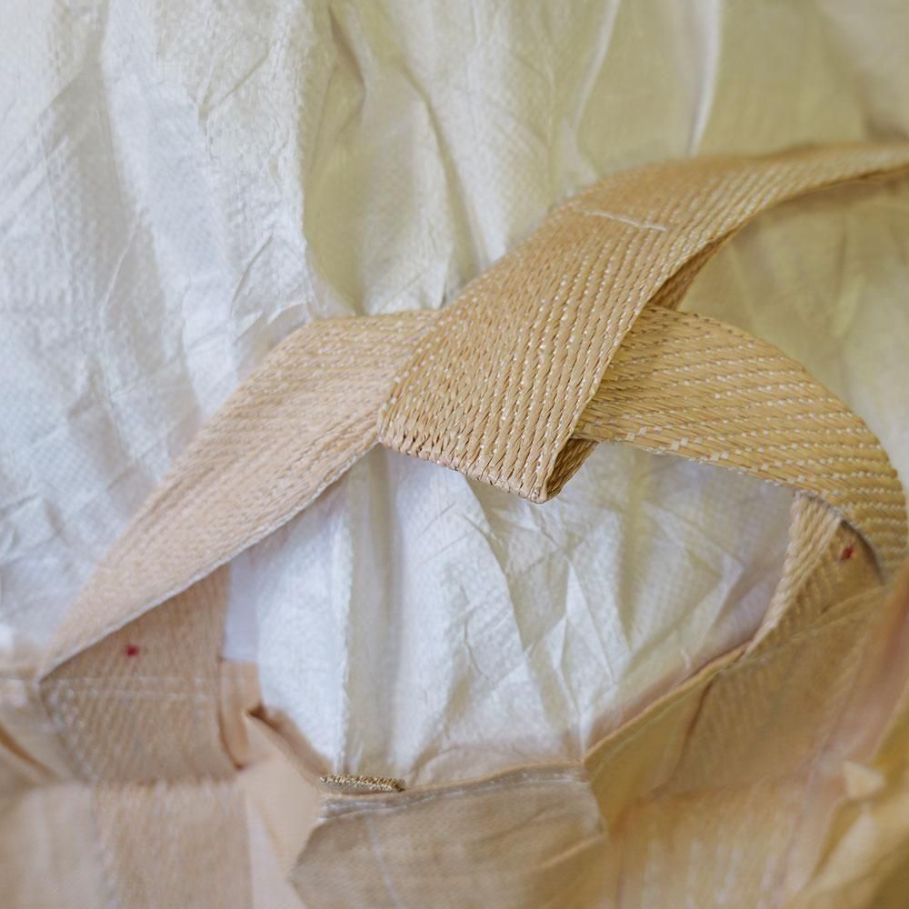 バージン材100%のフレコンバッグはすべてにおいてより強度があります。災害復旧で使う「大型どのう」などはバージン材をお勧めします。選択してお使いください。